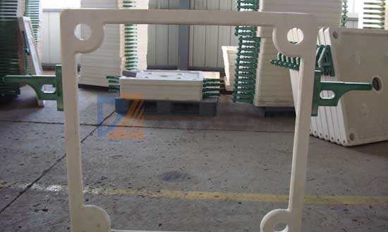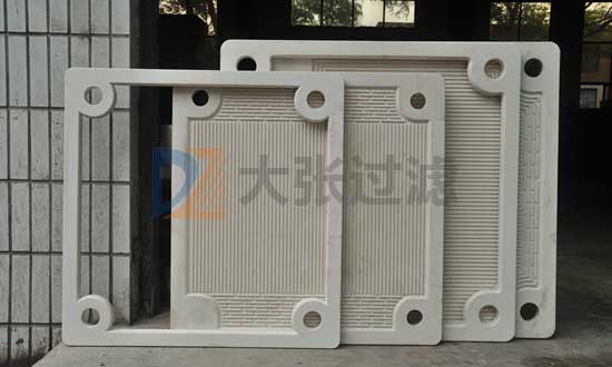 板框式濾板由濾板和濾框組成,壓濾機將帶有濾液通路的濾板和濾框平行交替排列,每組濾板和濾框中間夾有濾布,用壓緊端把濾板和濾框壓緊,使濾板與濾板之間構成一個濾室。具有操作簡單,濾餅含固率高,適用性強等優點。