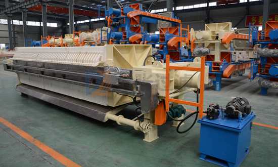 液壓壓緊板框式壓濾機(jī)由主機(jī)(機(jī)架和濾室)、液壓部件和電氣等部分組成。