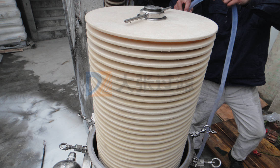 懸浮液用料泵送入紙板板框過濾器每個密閉的濾室,在壓力作用下,濾液透過濾層及濾布、經濾布出液口排出,濾渣則留在濾框內,從而達到固液分離的目的。硅藻土過濾器濾框和濾板之間本身靠紙板或濾材密封,是一種過濾量比較大,過濾面積在2m2以上的不銹鋼板框精密過濾機(又稱不銹鋼紙板濾機),下面配置了放置紙板固定橫桿,安裝放置濾材容易方便,用精密除菌紙板過濾各種保健酒、葡萄酒,可達除菌效果。